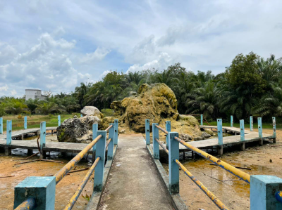 Wisata ini cukup unik, berupa gundukan batu kapur dan mengeluarkan semburan air belerang atau pancuran air belerang. Konon Batu Putih ini menurut masyarakat sekitar merupakan hasil pengeboran minyak sekitar Tahun 1942-1943, akan tetapi tidak keluar minyak dan yang keluar adalah semburan air yang mengandung kapur dan belerang. Seiring berjalannya waktu kapur tersebut lama-lama menggunung dan semakin tinggi hingga saat ini sudah mencapai kurang lebih setinggi 3 meter. Seiring dengan menumpuknya Batu Kapur, semburan air tidak terlalu kuat karena terhalang dengan Batu Kapur yang menumpuk dari tahun ke tahun.